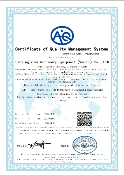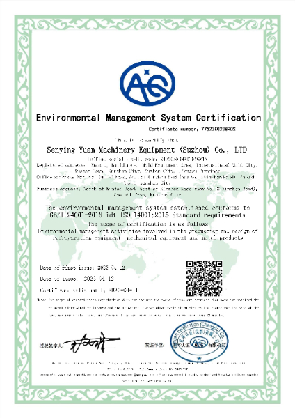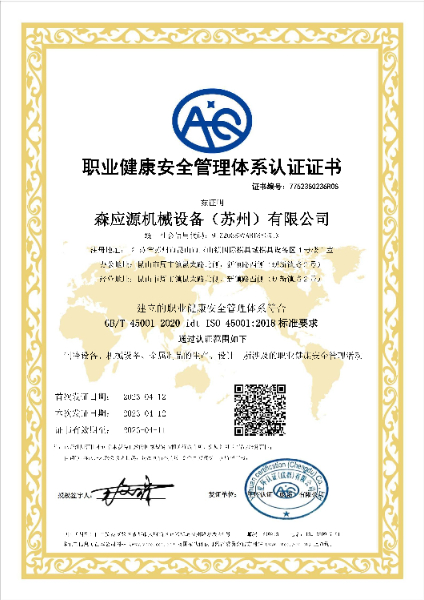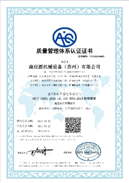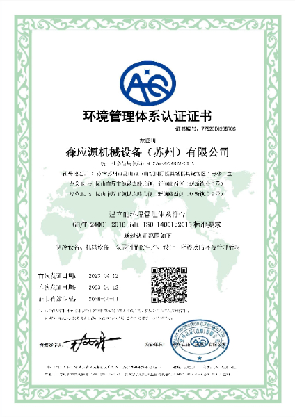森应源机械设备(苏州)有限公司全面取得iso认证管体系:质量体系认证,环境管理体系认证,职业健康安全管理体系认证。